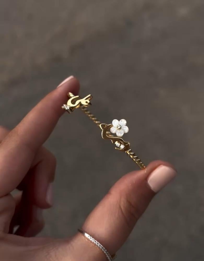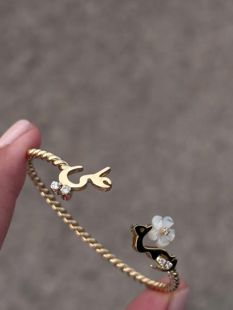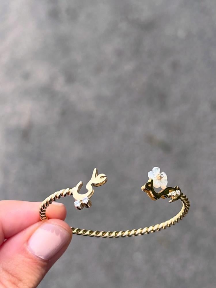اسوارة اسم مع وردة مع ترصيع وتنقيط بزركون