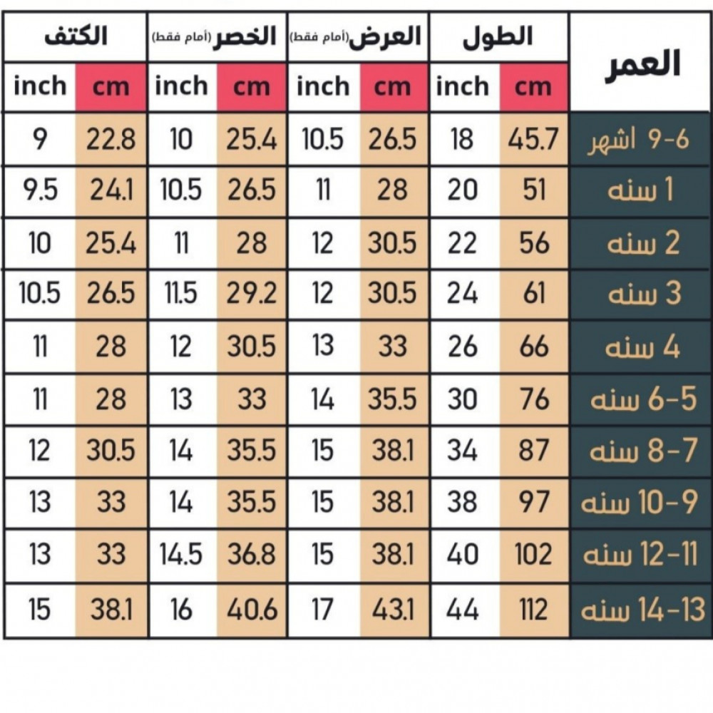 المقاسات تناسب الاجسام النحيفه والمتوسطه