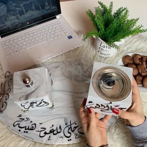 مبخرة وصينية واستاند وعلبة بالاسم حسب الطلب