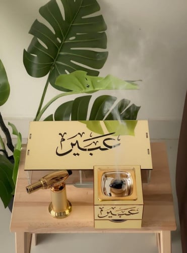 مباخر مرايا الذهبية مع ولاعة ذهبية بالاسم