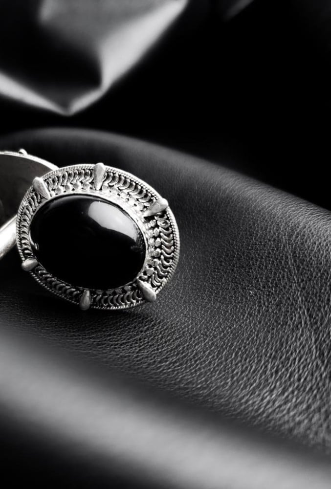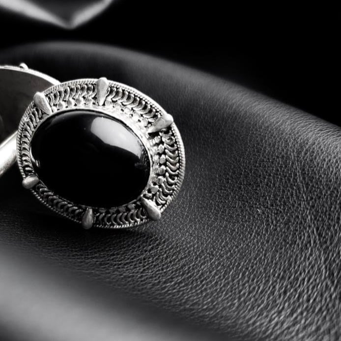 كبك فضة إيطالي خالص عيار 925 مع حجر العقيق الأسود
