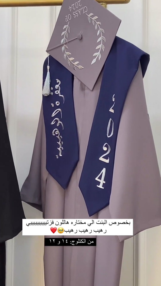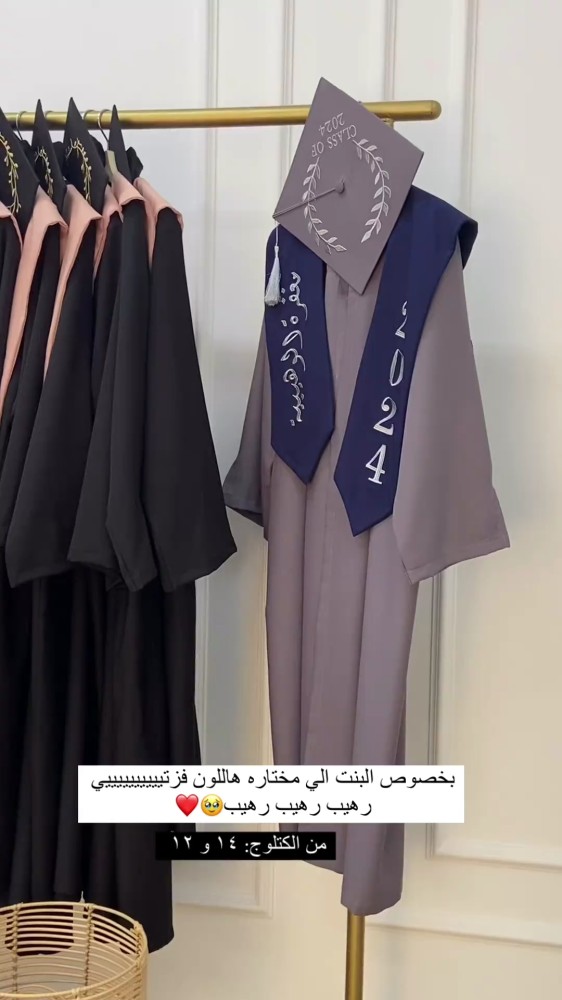 عبايات تخرج 2024 تفصيل العباية و تطريز الوشاح والقبعة حسب الطلب