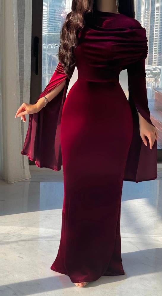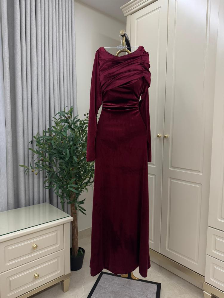 فستان نسائي سهره قماش جوخ شيفون بليسه