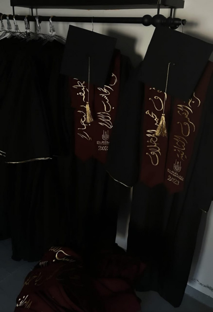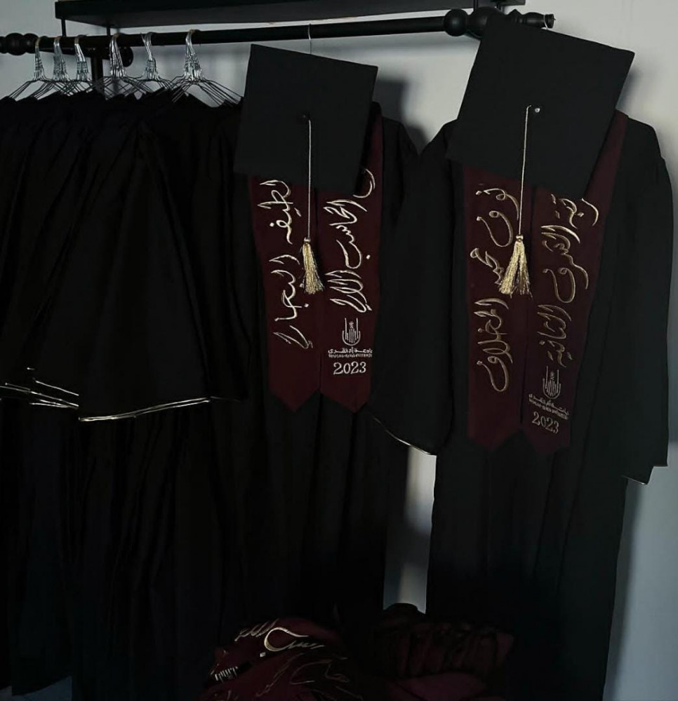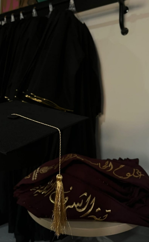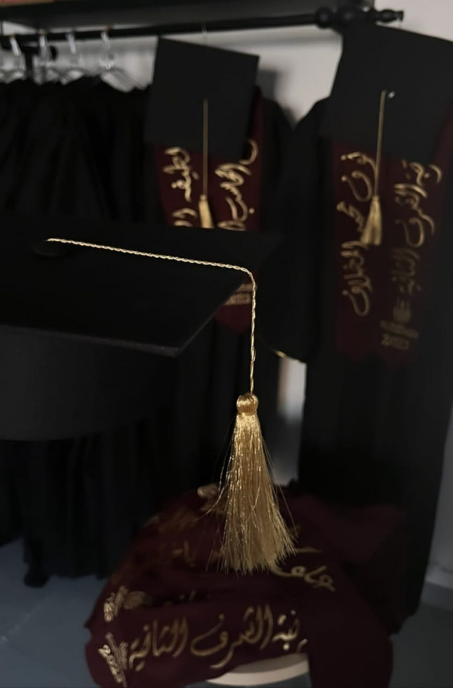 عباية تخرج كريب بالاسم والعبارة وسنة التخرج وشعار الدفعة
