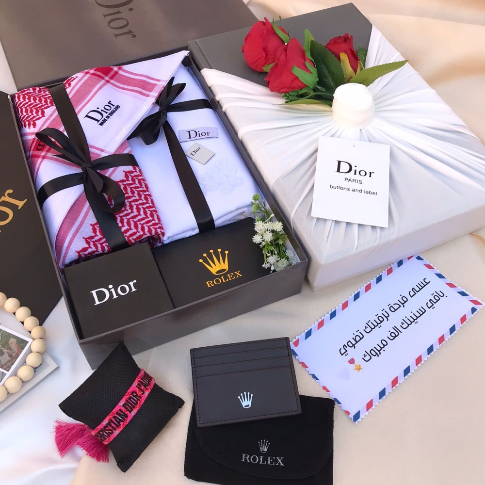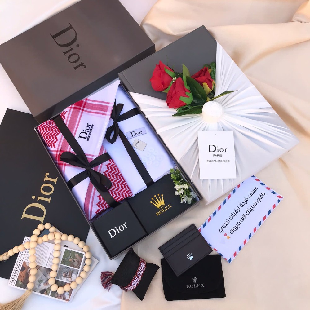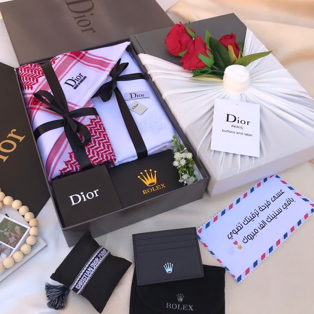 عروض بكسات رجالية 🎁 *﮼طقم رجالي مكون من * *قماش صيفي بملحقات الماركه * الصناعة كوري الخامه جدًا ممتازه المقياس 3.5 في عرضين متوفر ابيض وسكري ع حسب الطلب *شماغ ديور أحمر* المقاسات 60/58/55 بوك بطايق رولكس 👝 أسواره ديور 🎁 مصمم على شكل هديه🎁🛍️ مع التغليف 🎁 التنسيق والورد 🎁🌹 مع عباره من اختيارك 💌 السعر 340 ﷼ فقط 💐