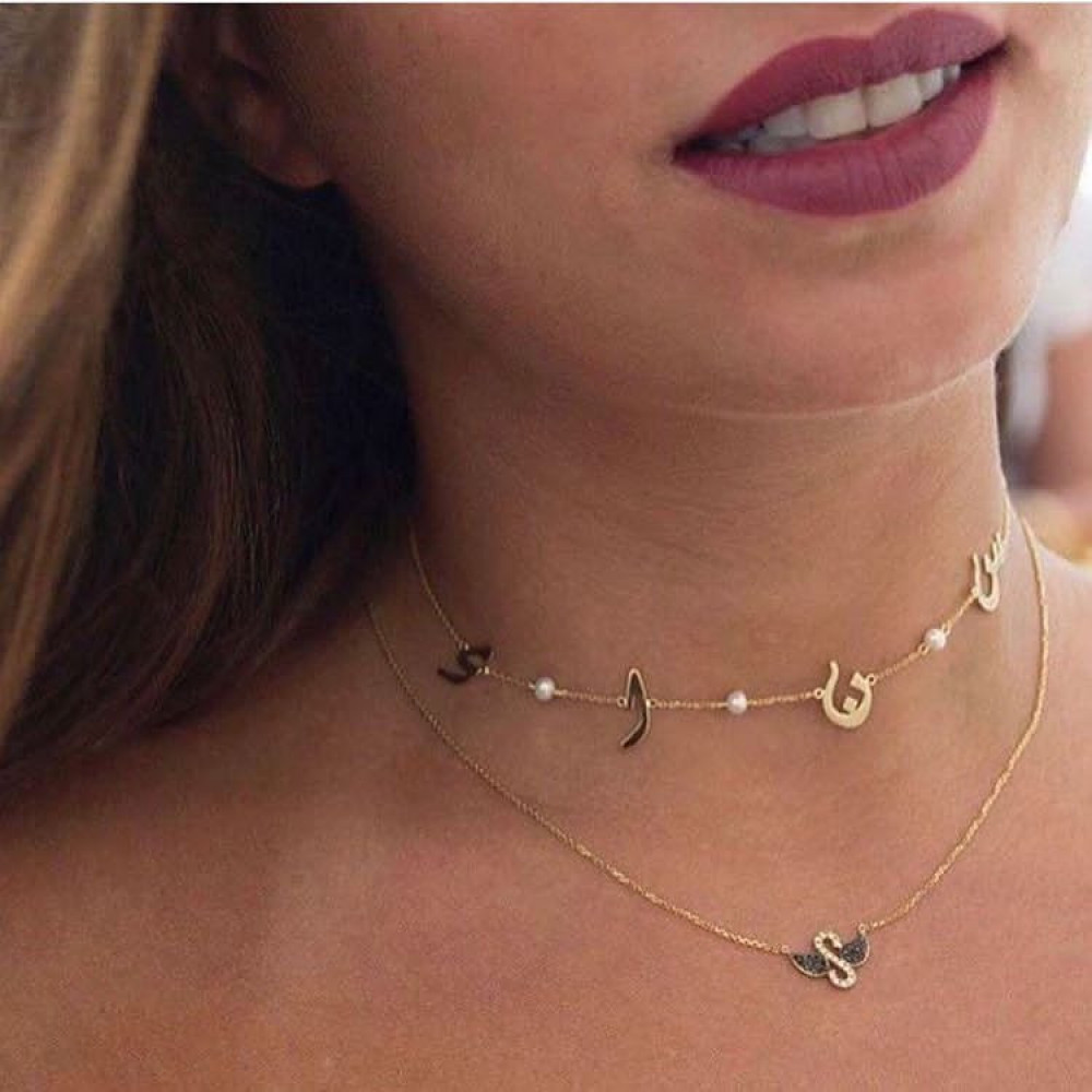 سلسال بتصميم الاسم مع حرف شوكر اللؤلؤ