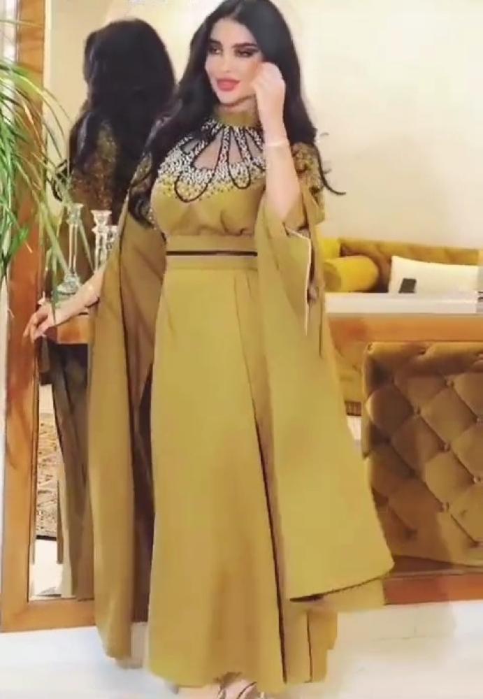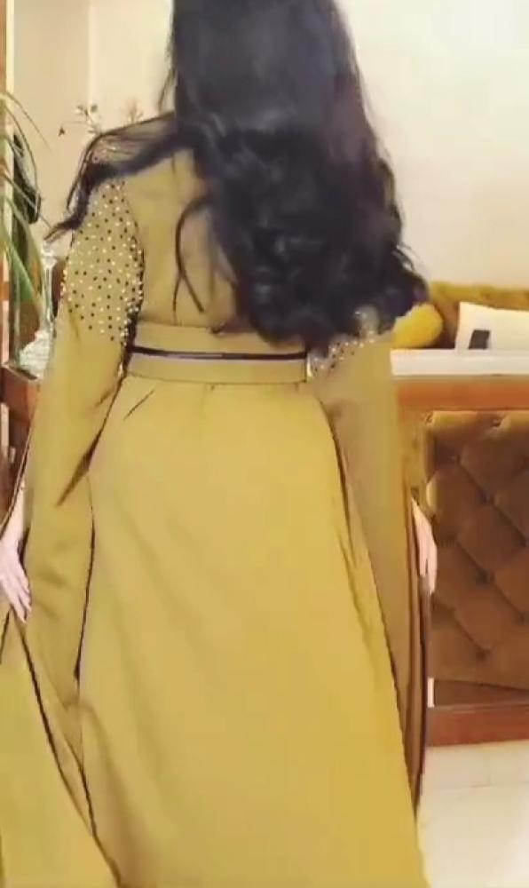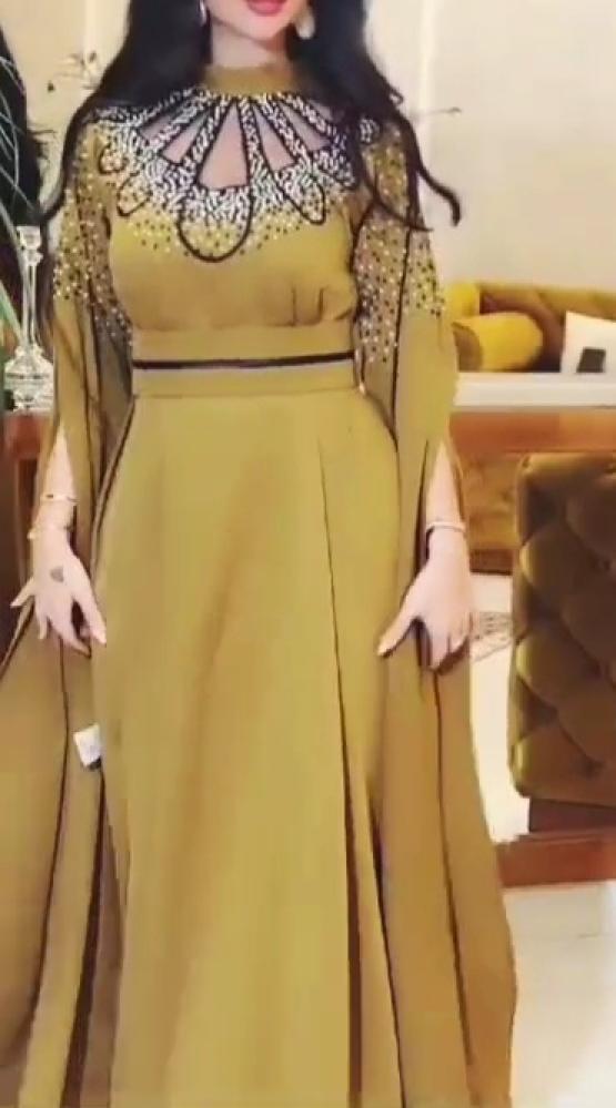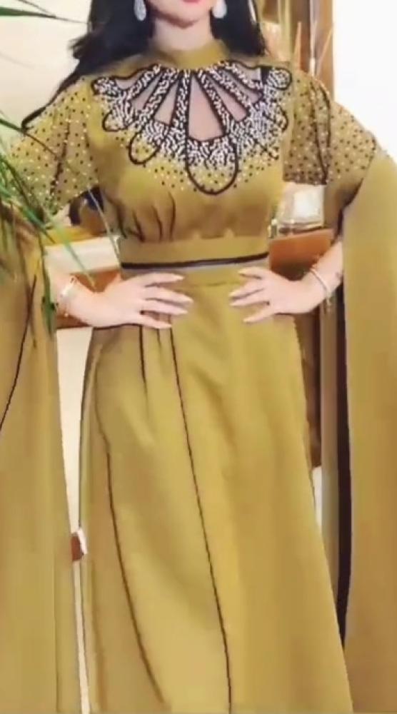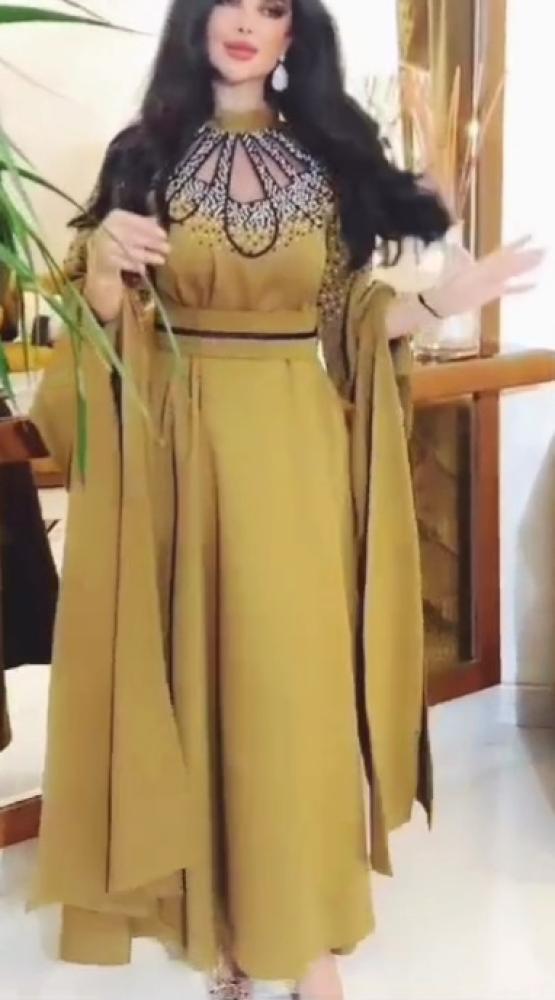 فستان نسائي خامة تفته مع كريب تطريز مع فصوص لولو كبس