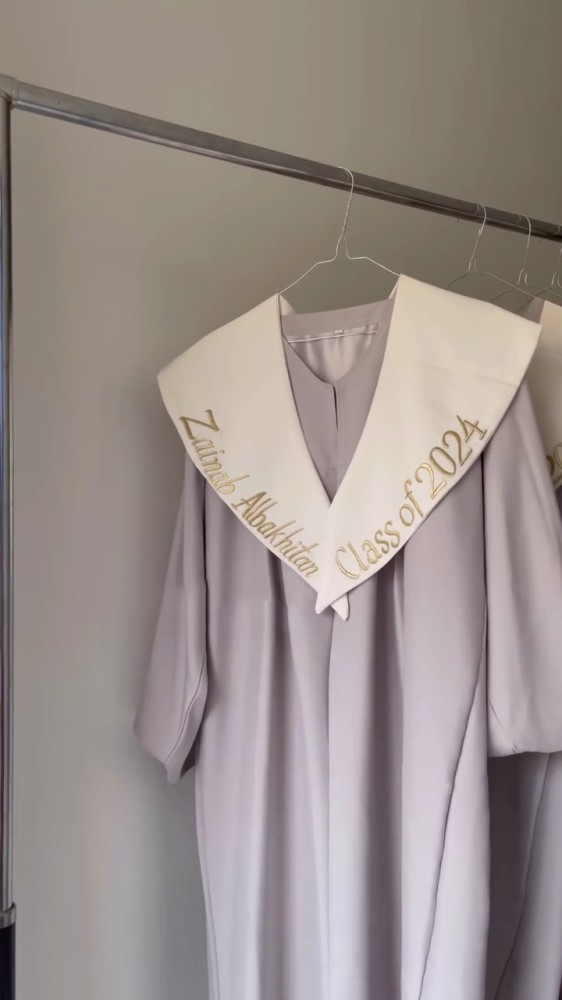 عبايات تخرج 2024 تفصيل العباية و تطريز الوشاح والقبعة حسب الطلب