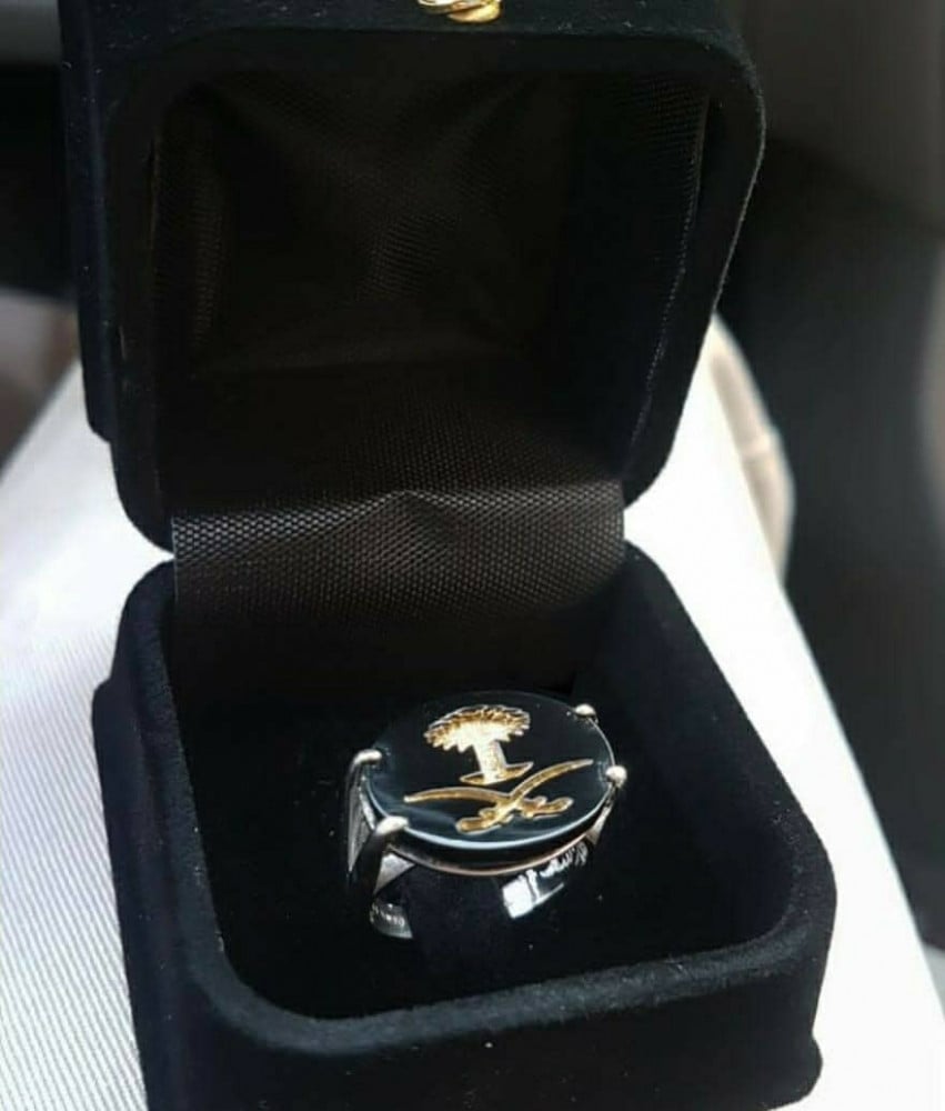 خاتم ملكي فضة صب خاتم رجالي ملكي فضة إيطالي خالص عيار 925 مع نحت الاسم والسيفين ونخلة او سادة