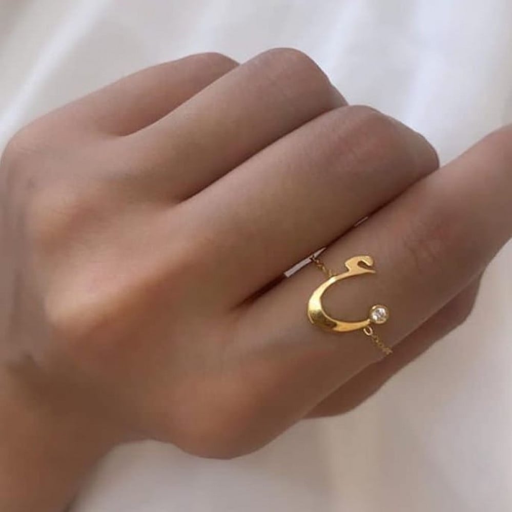 خاتم بتصميم الحرف او الاسم او البرج مع الزركون او الؤلؤ تفصيل حسب الطلب