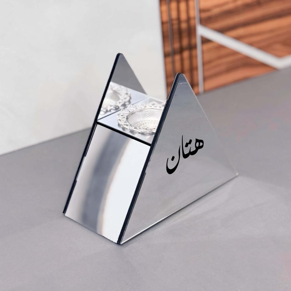 مبخرة شكل مثلث من الاكريلك الاسود ٣ ملم مغطاة بالاكريلك الفضي العاكس ( مرايا )