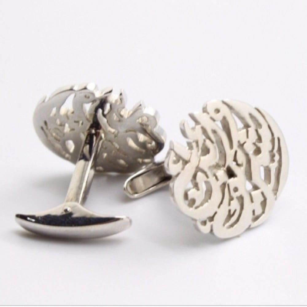 طقم فضة كبك ملكي مع خاتم فضة خالص عيار 925 بالاسم مع عقيق فضة إيطالي خالص عيار 925 مع حجر الاونكس