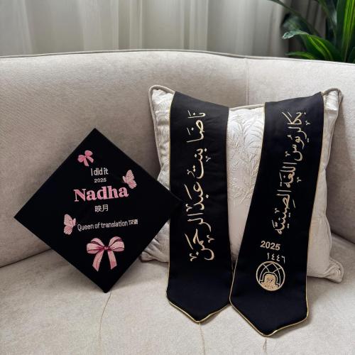 تفصيل العباية مع تطريز الوشاح والقبعة حسب الطلب