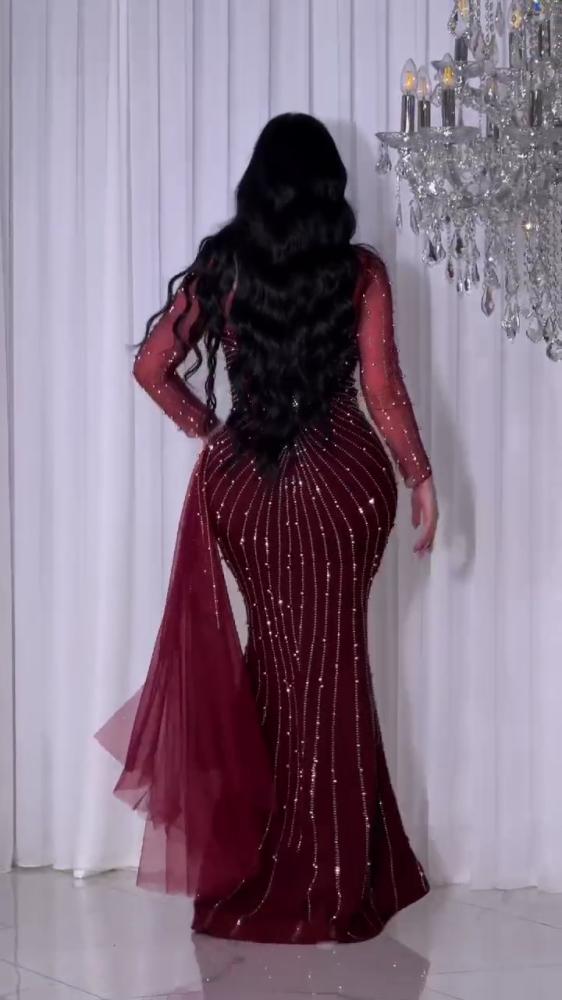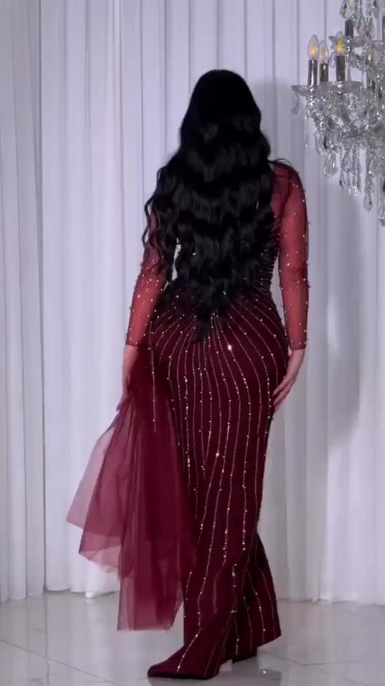 فستان نسائي كامل الأوصاف قماش كريب ستريتش مع تل مع لول فصوص الأصلي