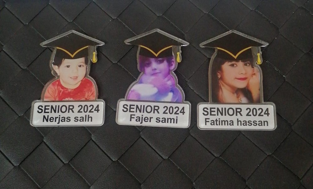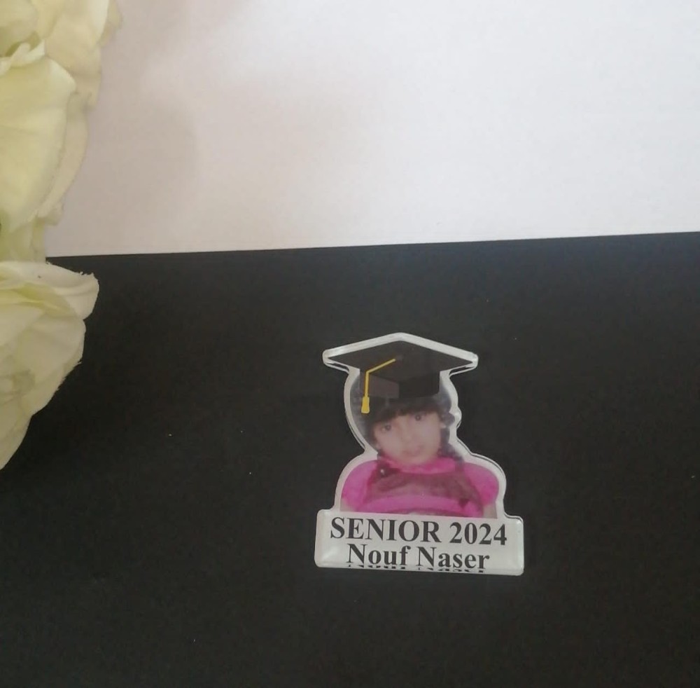 بروش تخرج بالاسم والعبارة وسنة التخرج وشعار وصورة تصميم حسب الطلب بروش
