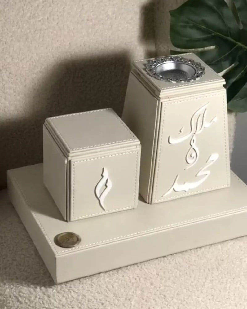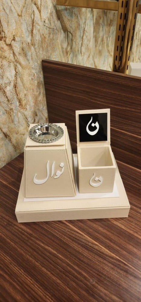 متوفر لون الكتابة باللون الذهبي والفضي والابيض