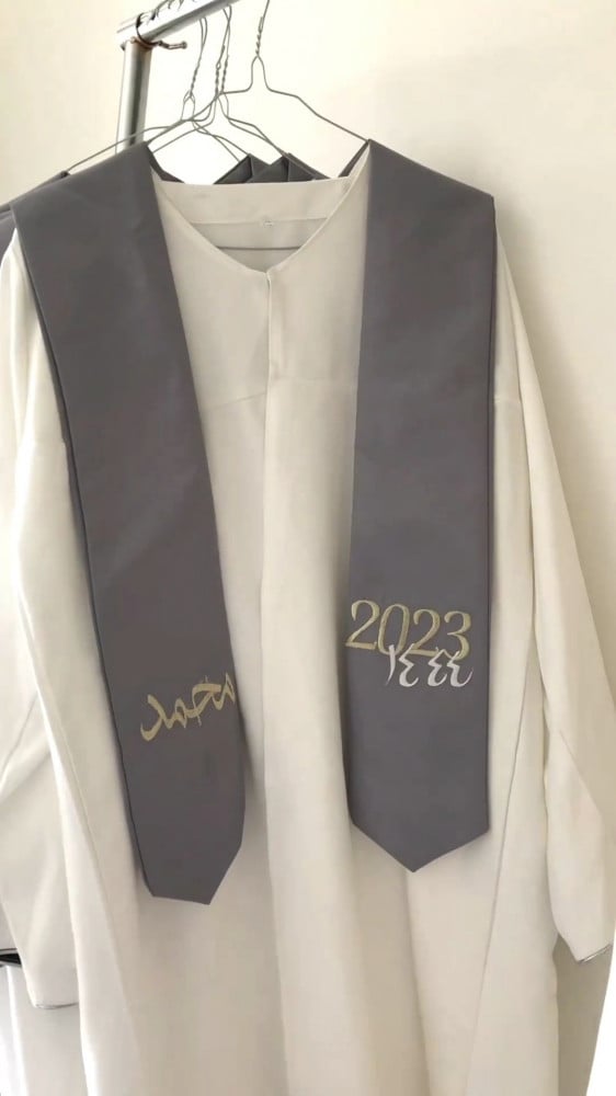 عباية تخرج كريب بالاسم والعبارة وسنة التخرج وشعار الدفعة
