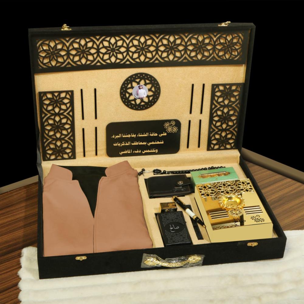 سديري شتوي رجالي مع قماش شتوي مع مبخرة مع سبحة مع قلم بالاسم مع بوك مع بوكس بعبارة