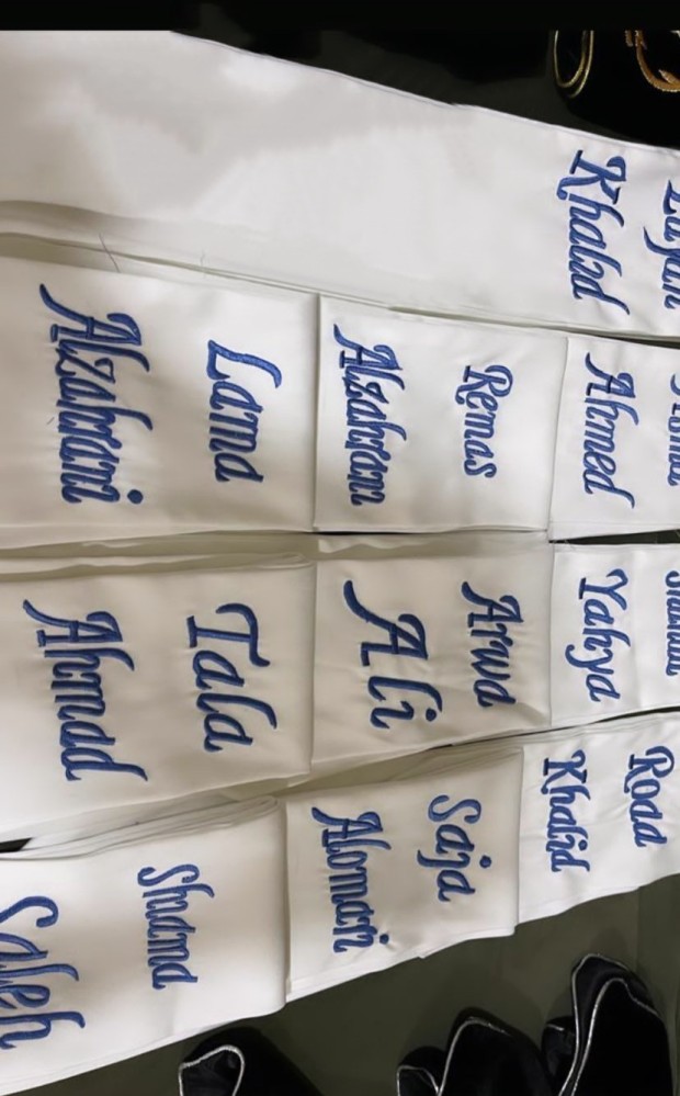 وشاحات تخرج تفصيل وتطريز حسب الطلب قماش ياباني