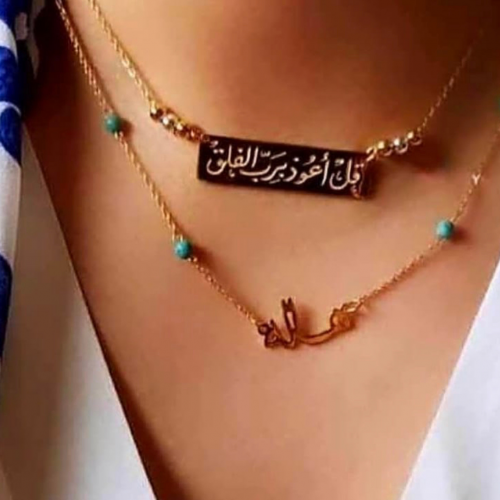 سلسال مميز جدا بتصميم الاسم مع الحرف بالعربي أو الإنكليزيي يمكن حتى طلب اسمين في السلسال واحد مطلي بطلاء ذهب عيار 21 مع ضمان سنتين على اللون بسمك 0.7 مم وطبعا مع علبة مخصصة وكيس