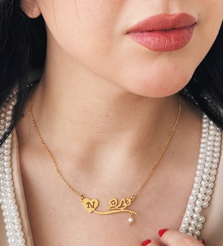 سلسال حرف مع قلب مع الاسم حسب الطلب.يمكنك كتابة الأحرف عربي او انجليزي.يتوفر اللونين:الذهبي.الفضي.ضمان سنتين على اللون.نصنعه باحتراف يدوياً وبشكل خاص لكل عميل.