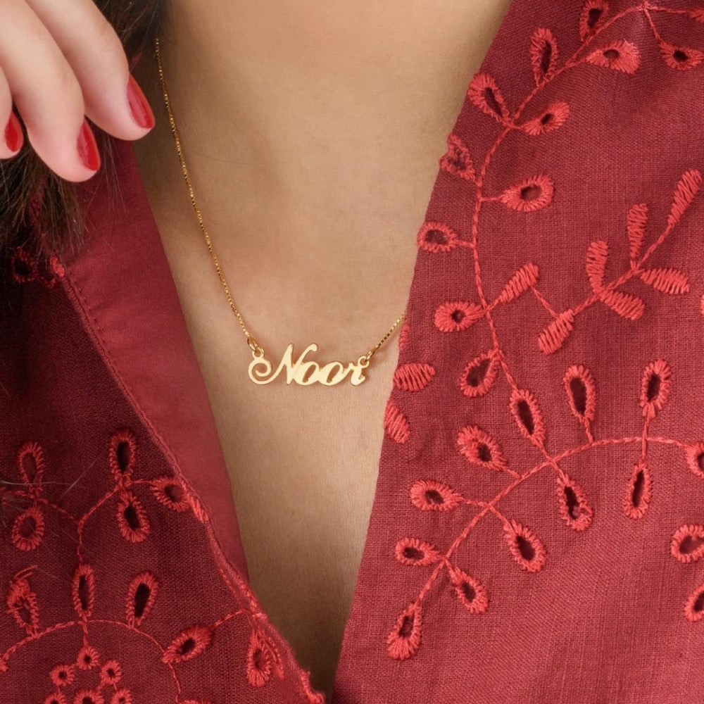 سلسال مميز جدا بتصميم الاسم مع الحرف بالعربي أو الإنكليزيي يمكن حتى طلب اسمين في السلسال واحد مطلي بطلاء ذهب عيار 21 مع ضمان سنتين على اللون بسمك 0.7 مم وطبعا مع علبة مخصصة وكيس