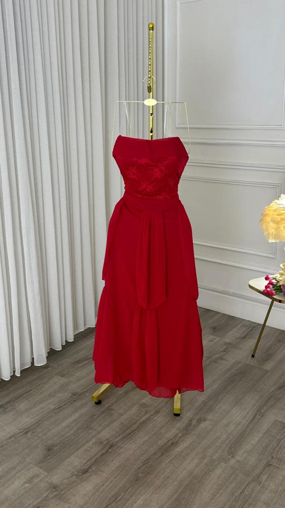 فستان نسائي سهره قماش جورجيت مع دانتيل