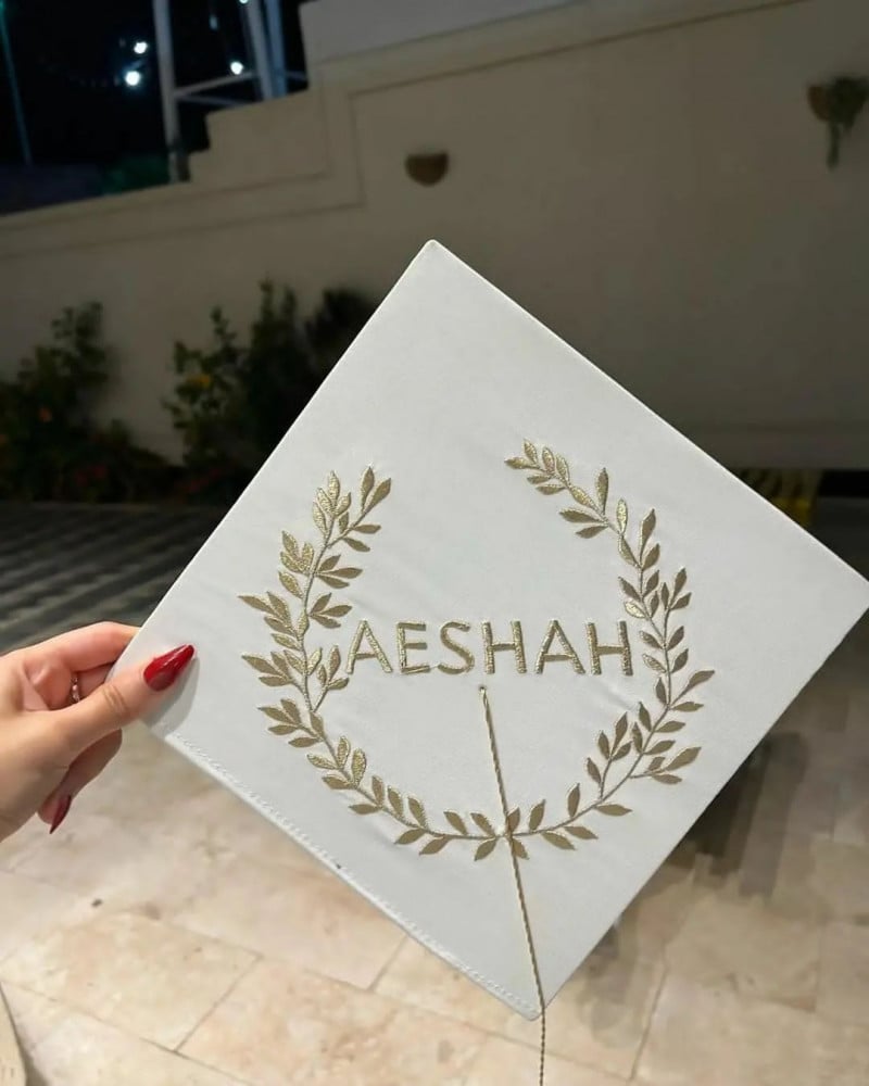 عبايات تخرج مع وشاح وقبعه تفصيل وتطريز حسب الطلب