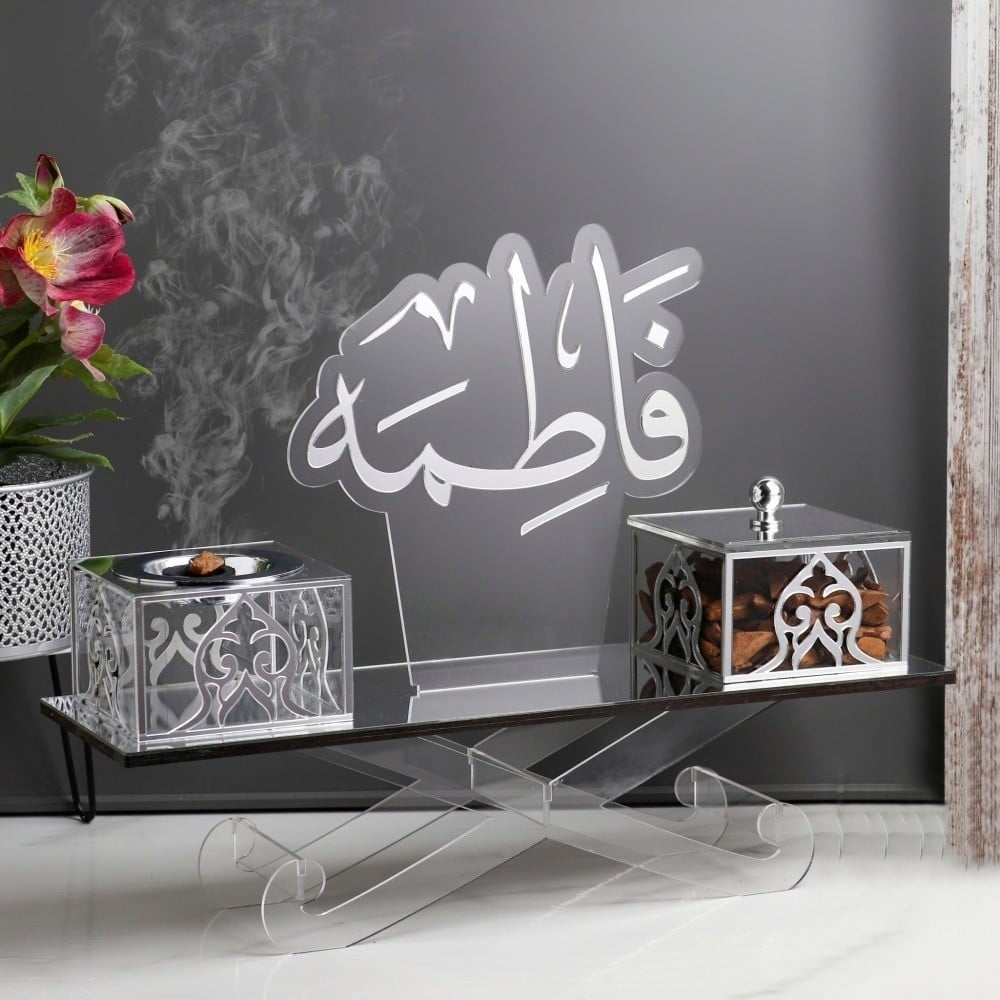 3- قاعدة مميزه مع أستاند باسم من أختيارك تحمل المبخرة وعلبة البخور .