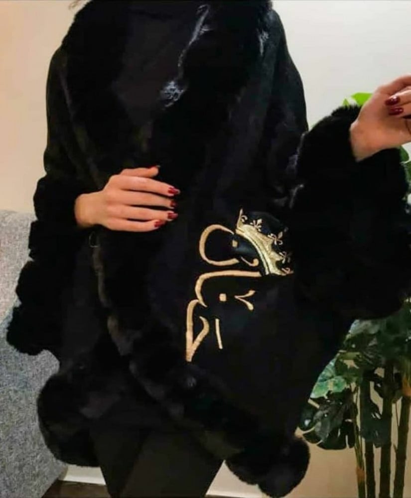 شال شتوي نسائي جوخ مع سدو مبطن بفرو مع طاقية بالاسم