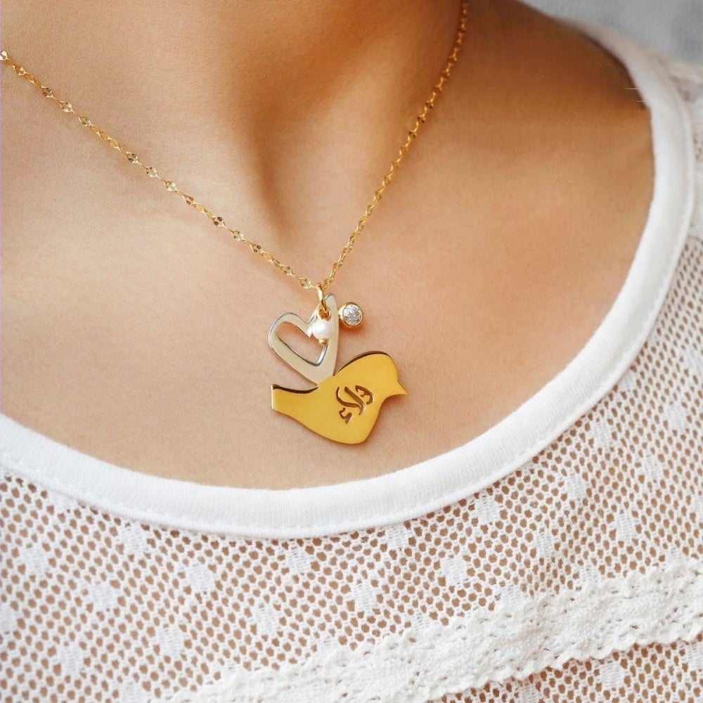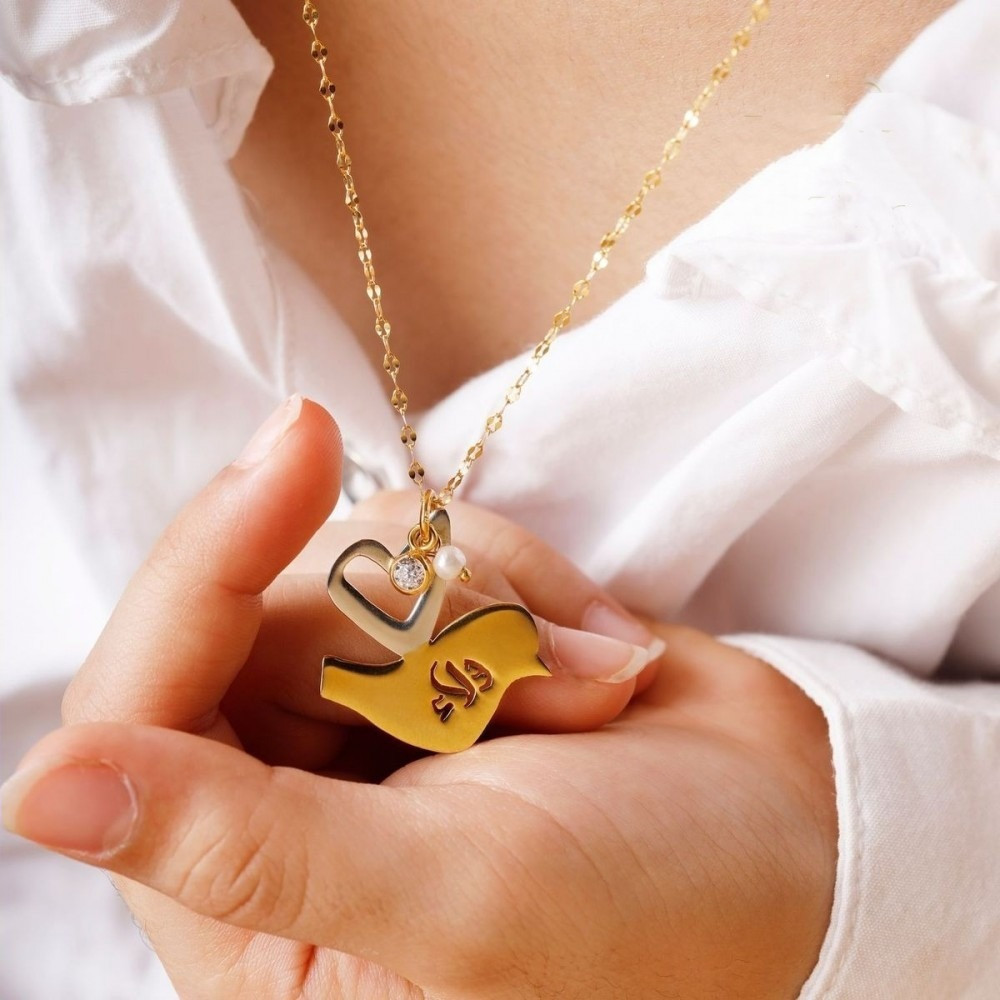 سلسال الحمامة بالاسم بلونين مع لؤلؤ بتصميم حسب الطلب