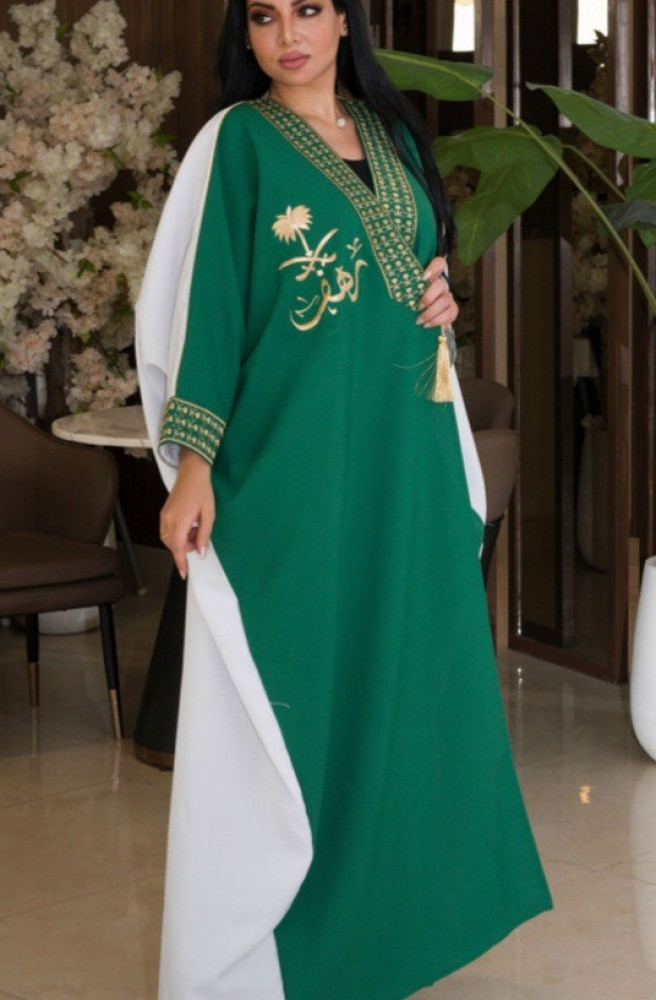بشت وعباية اليوم الوطني نسائي بالاسم مع السيفين ونخلة حسب الطلب