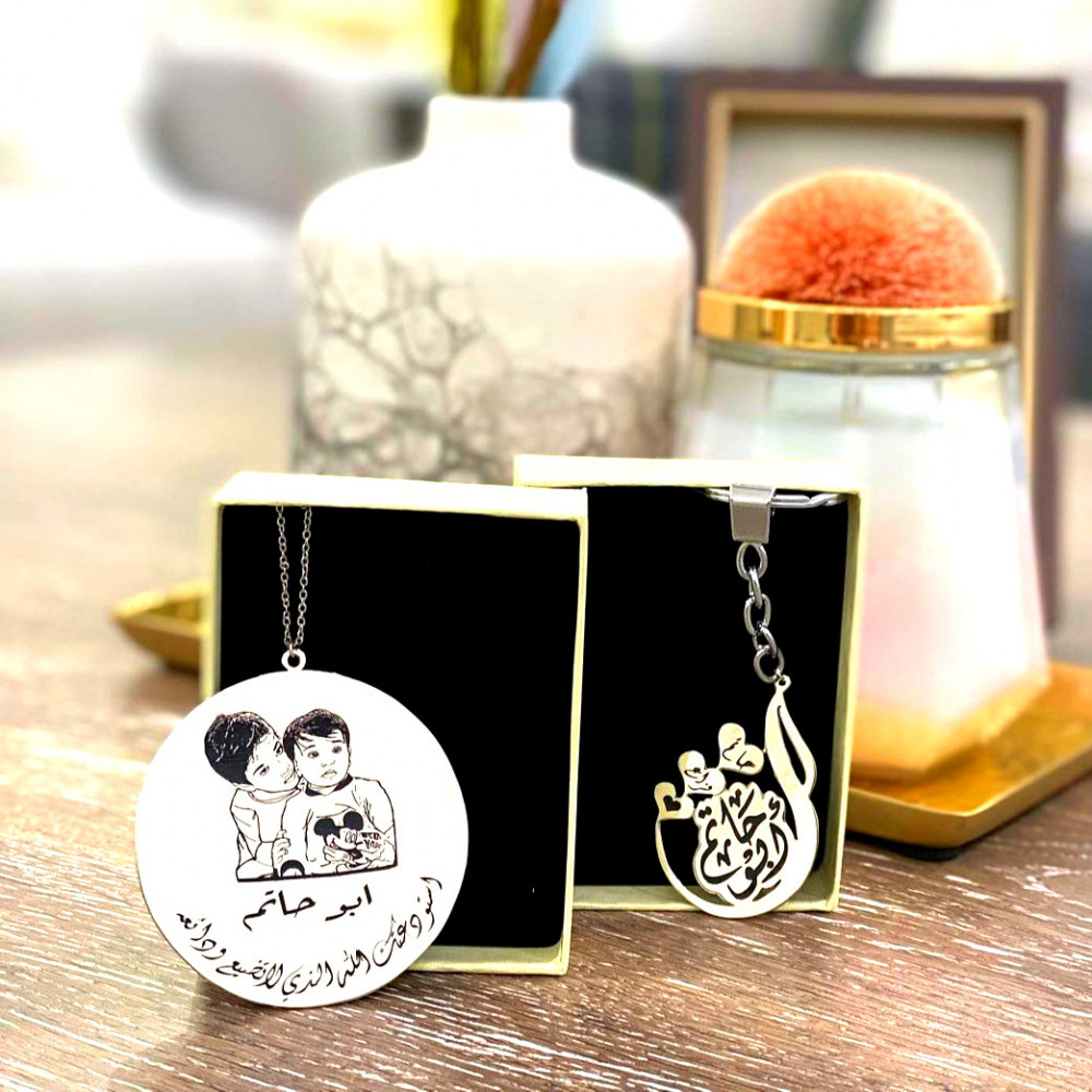 تعليقة سيارة الصورة بتصميم حسب الطلب مع الاسم والعبارة والصورة
