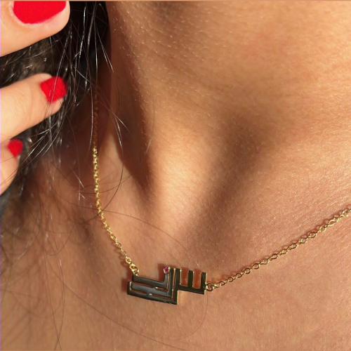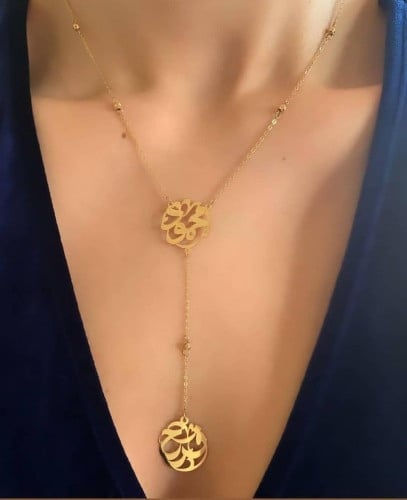 سلسال بتصميم احرف الاسم بلونين مع الزركون حسب الطلب