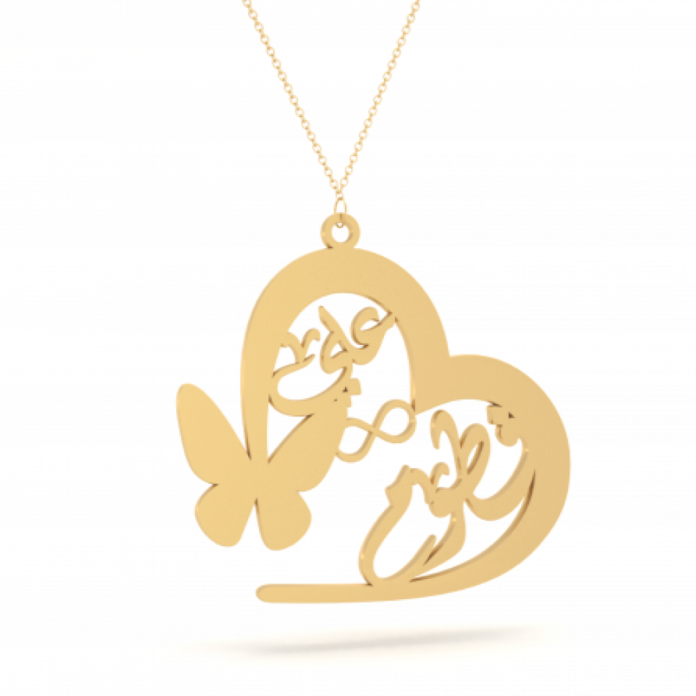 سلسال الفراشة مع قلب باسمين بتصميم حسب الطلب