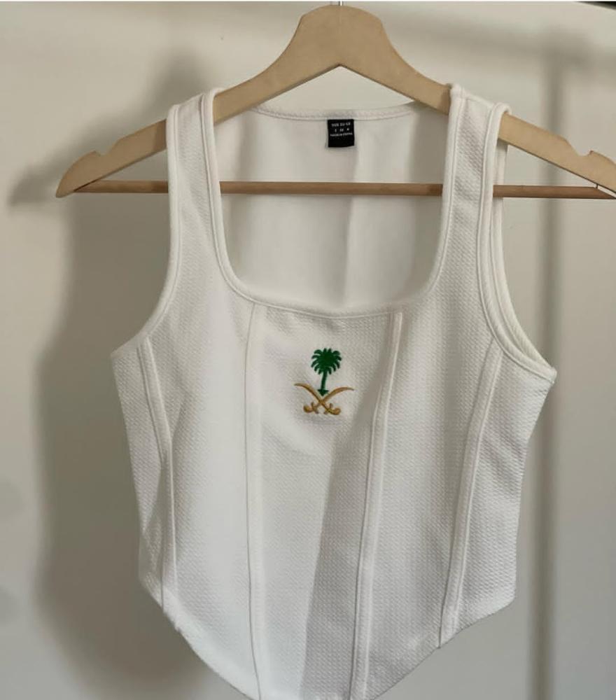 بلوزة اليوم الوطني بتصميم هوية اليوم الوطني والاسم حسب الطلب نسائي