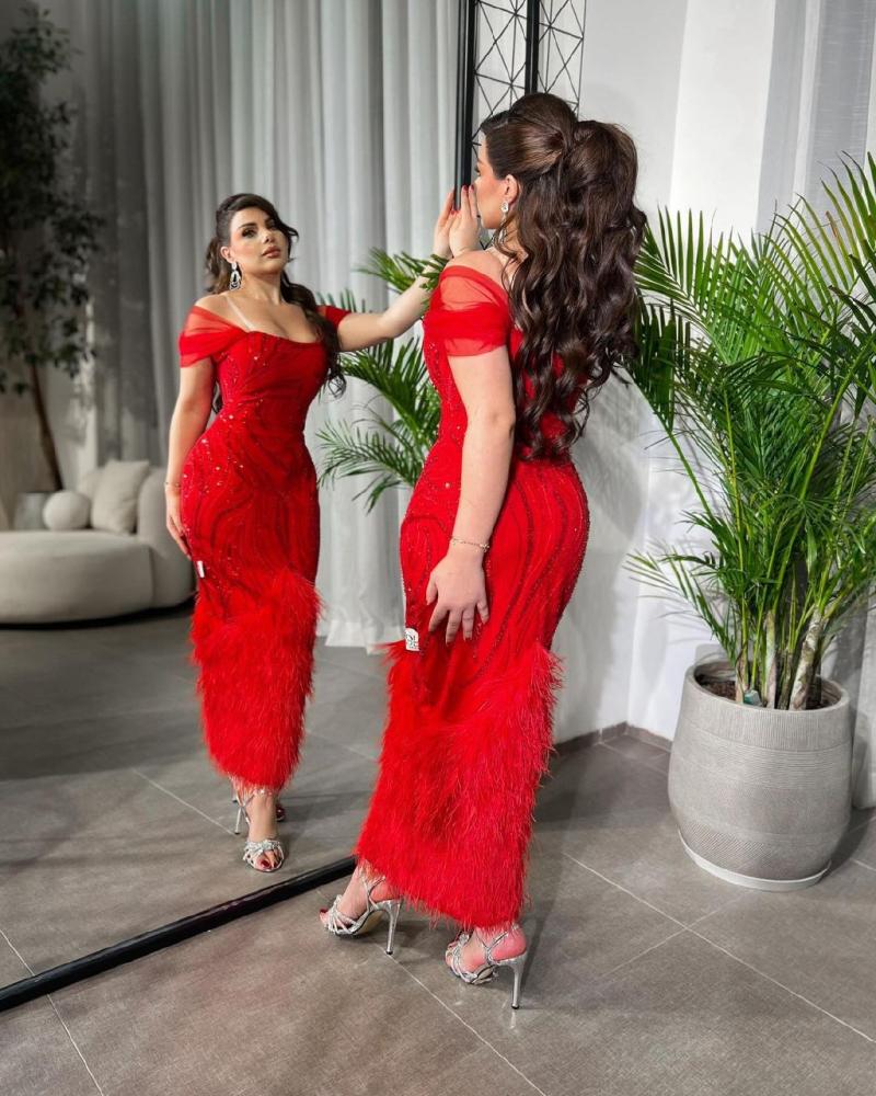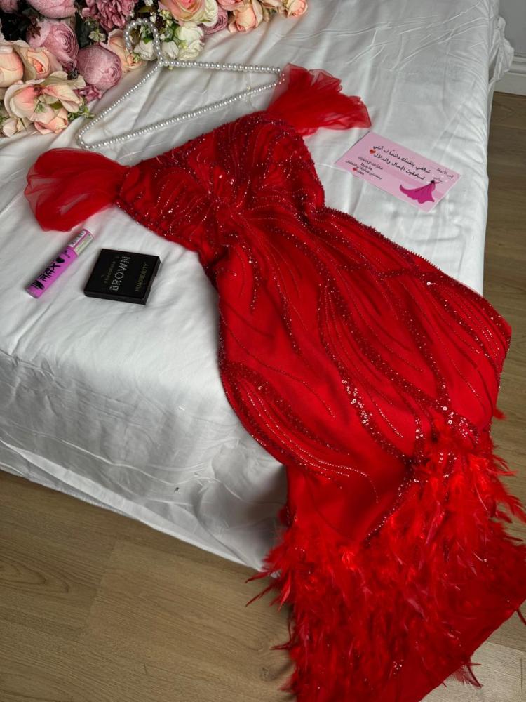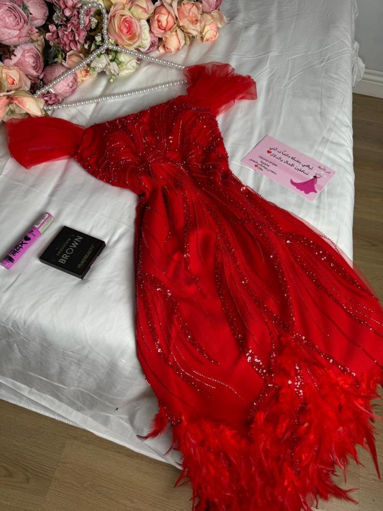 فستان نسائي كلفة جاهزة مع تفته مع ريش