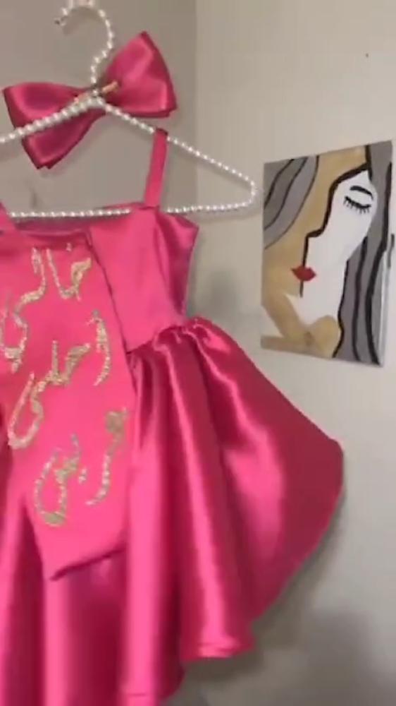 فساتين بناتي قماش كريب مع تطريز اسم احلى عروس