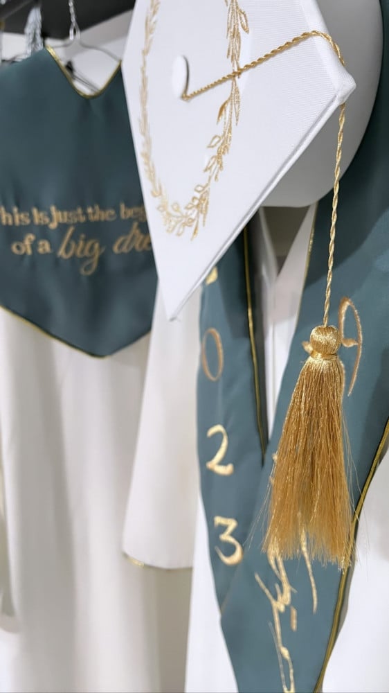 عبايات تخرج مع وشاح وقبعه تفصيل وتطريز حسب الطلب