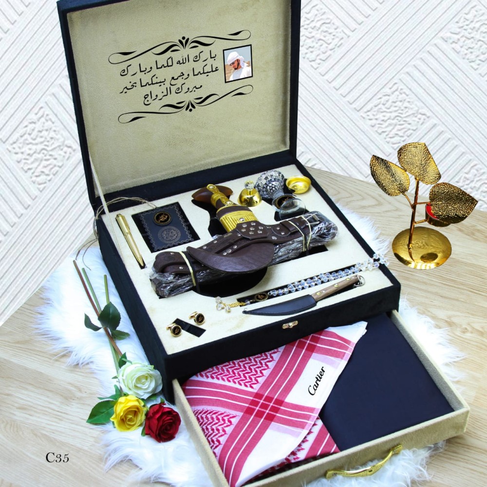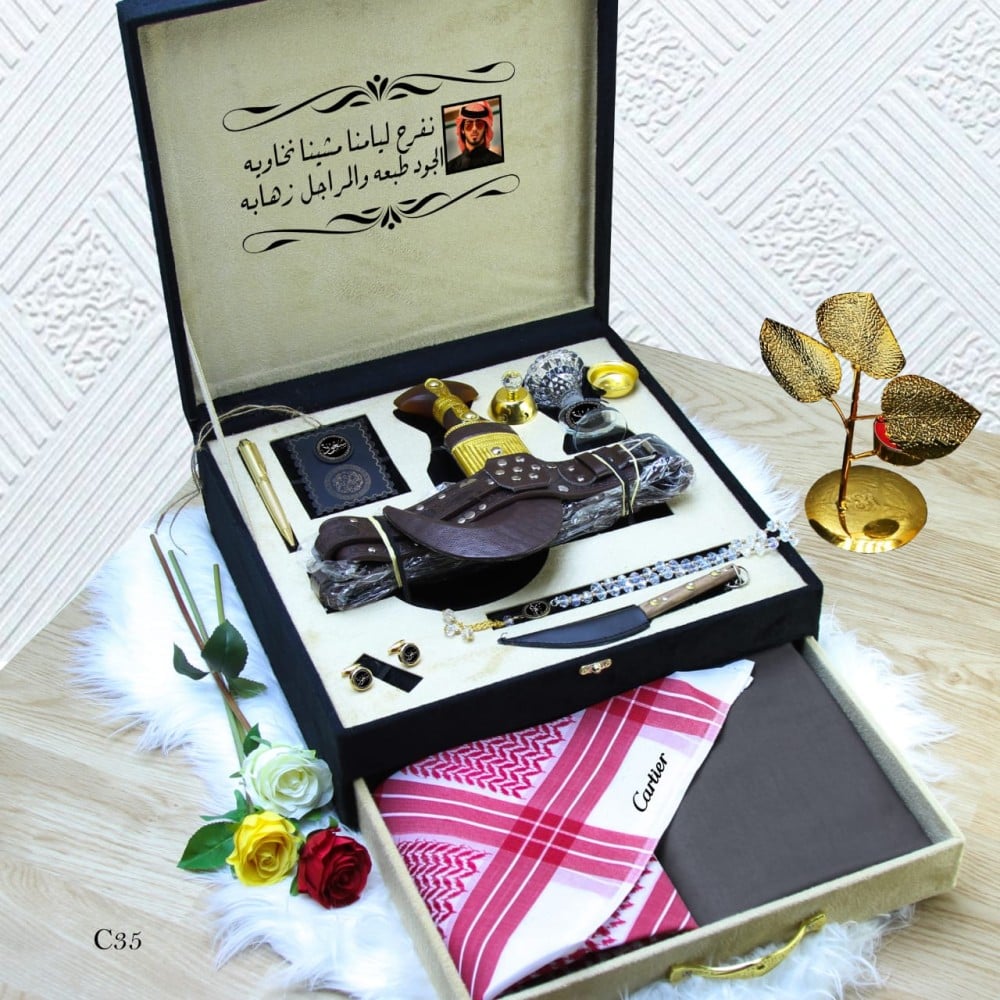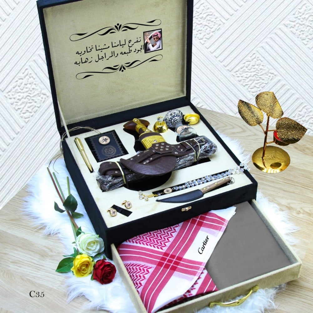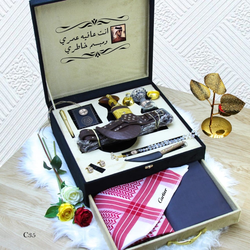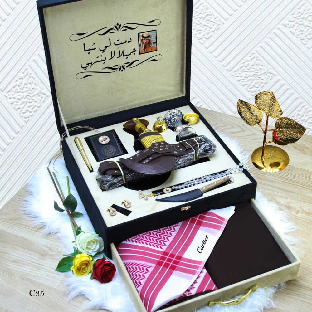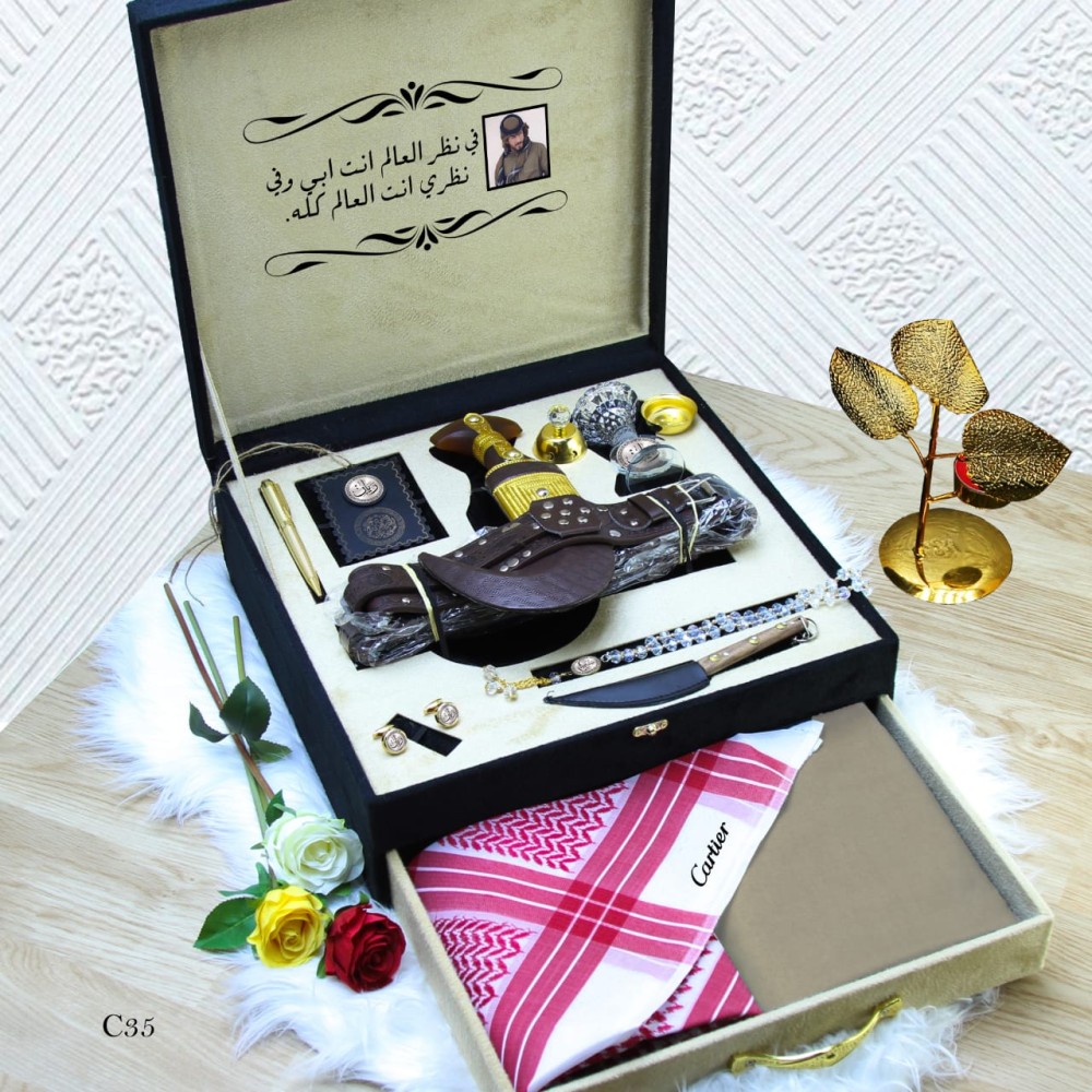 طقم وبوكس رجالي قماش ماركة كارتر مع خنجر مع توابع الماركة