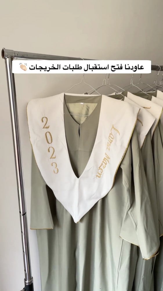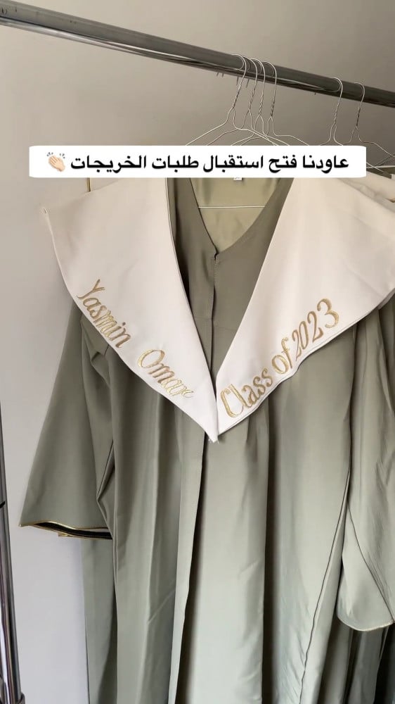 عبايات تخرج 2023 تفصيل العباية و تطريز الوشاح والقبعة حسب الطلب