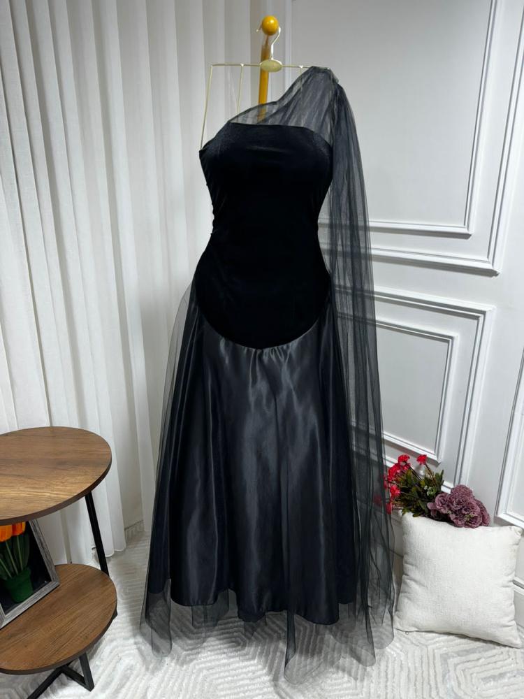 فستان نسائي مخمل كوري مع تفته سيلا مع تل دبل كلوش