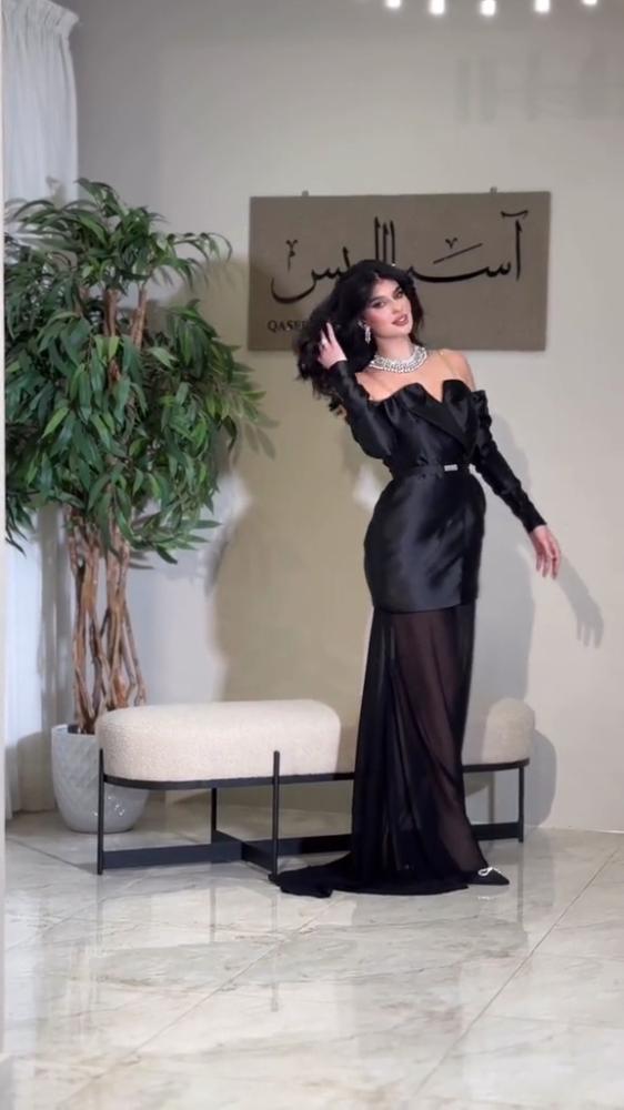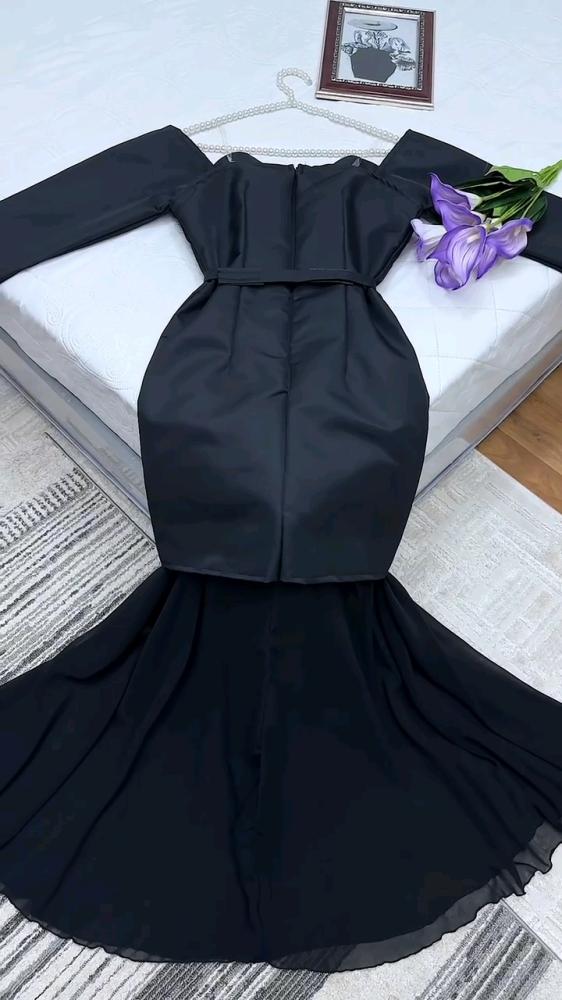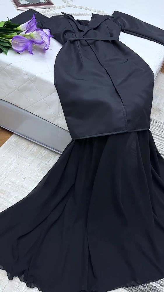 فستان نسائي اسود خامة تفته خع شيفون ناعم