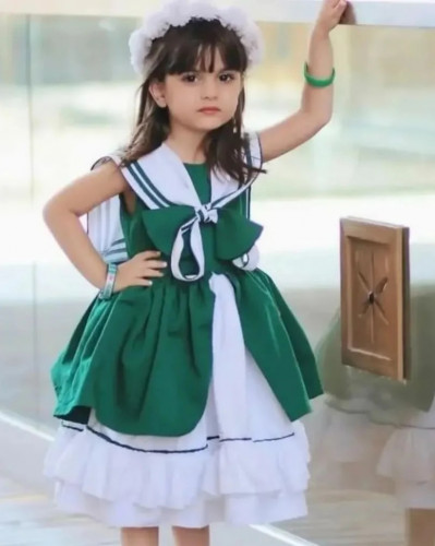 فستان وطني بناتي لليوم الوطني قماش كريب مع سدو