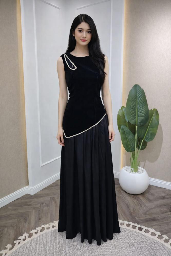 فستان نسائي قماش جوخ مع شيفون ناعم
