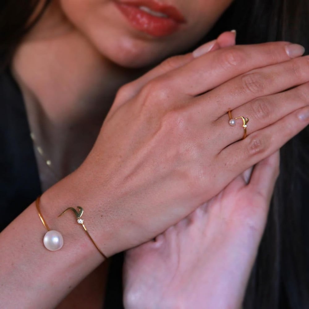 اسوارة وخاتم مع حجر كريم او مع لؤلؤ بتصميم حسب الطلب