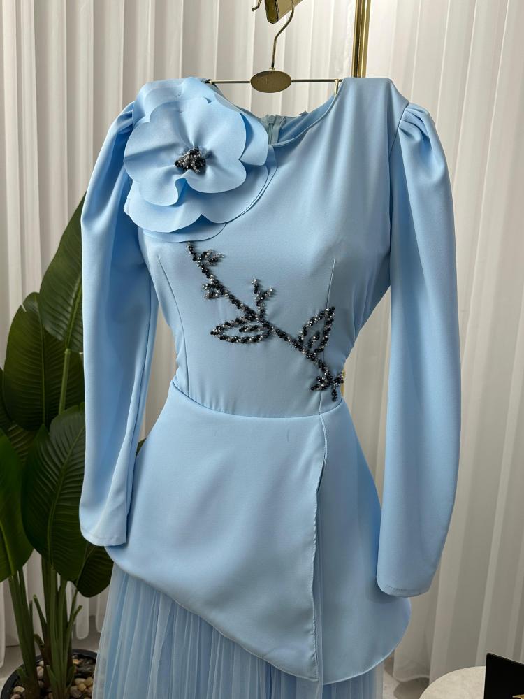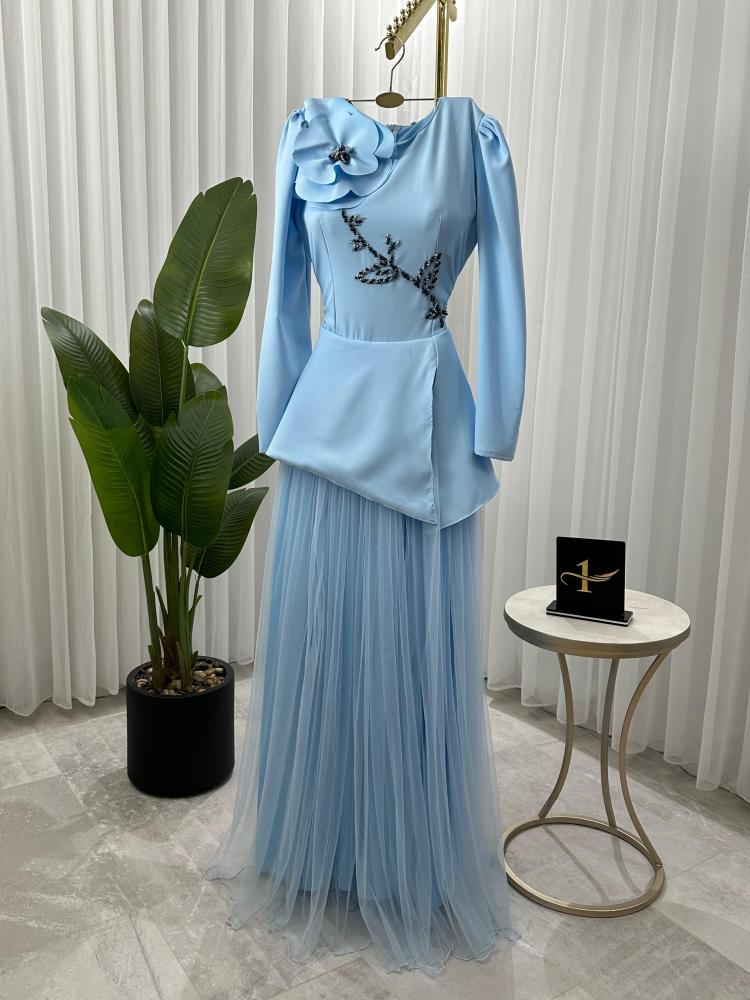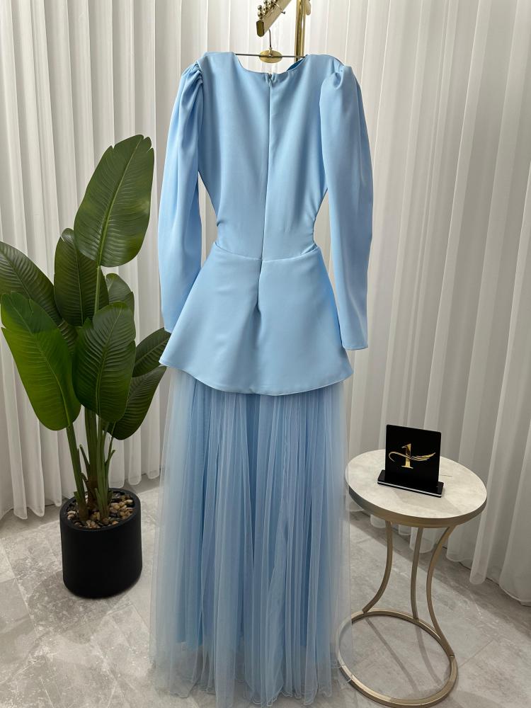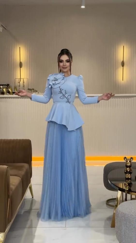 فستان نسائي سهره قماش باربي مع تول ناعم دبل كلوش