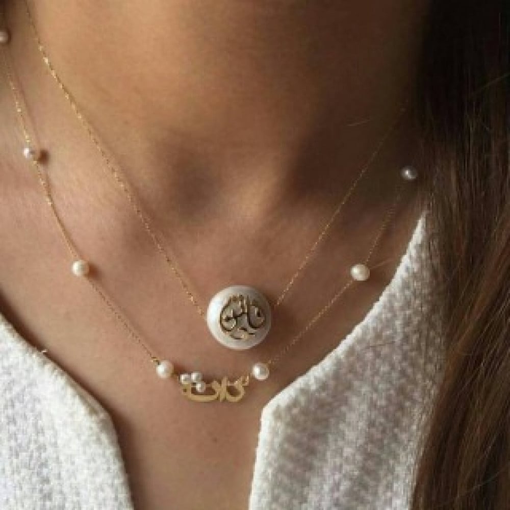 سلاسل نسائي مع لؤلؤ او مع شوكر لؤلؤ بالاسم تصميم حسب الطلب