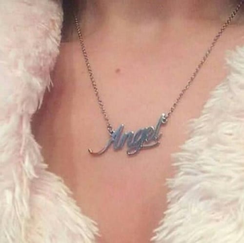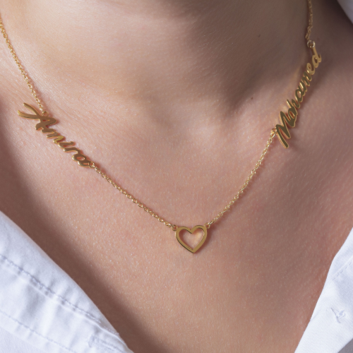 مطلي بالذهب عيار 21 قيراط.يمكنك تخصيص أي اسم أو كلمة (عربي أو إنجليزي)..متوفر ذهبي أو فضي.ضمان سنتين على اللون من لافيولا.سمك 1.0 مم.تأتي داخل علبة هدايا بسيطة وكيس عليها شعار لافيولا
