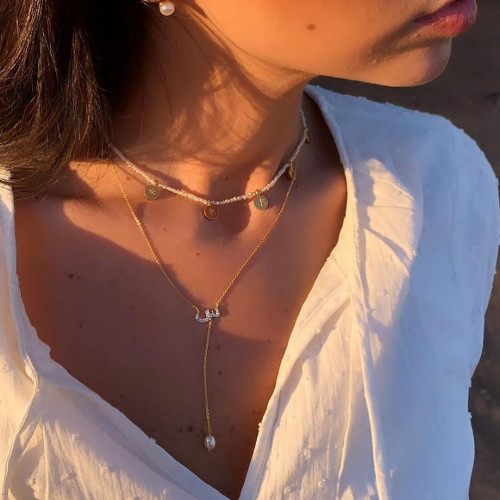 سلاسل نسائي مع لؤلؤ او مع شوكر لؤلؤ بالاسم تصميم حسب الطلب